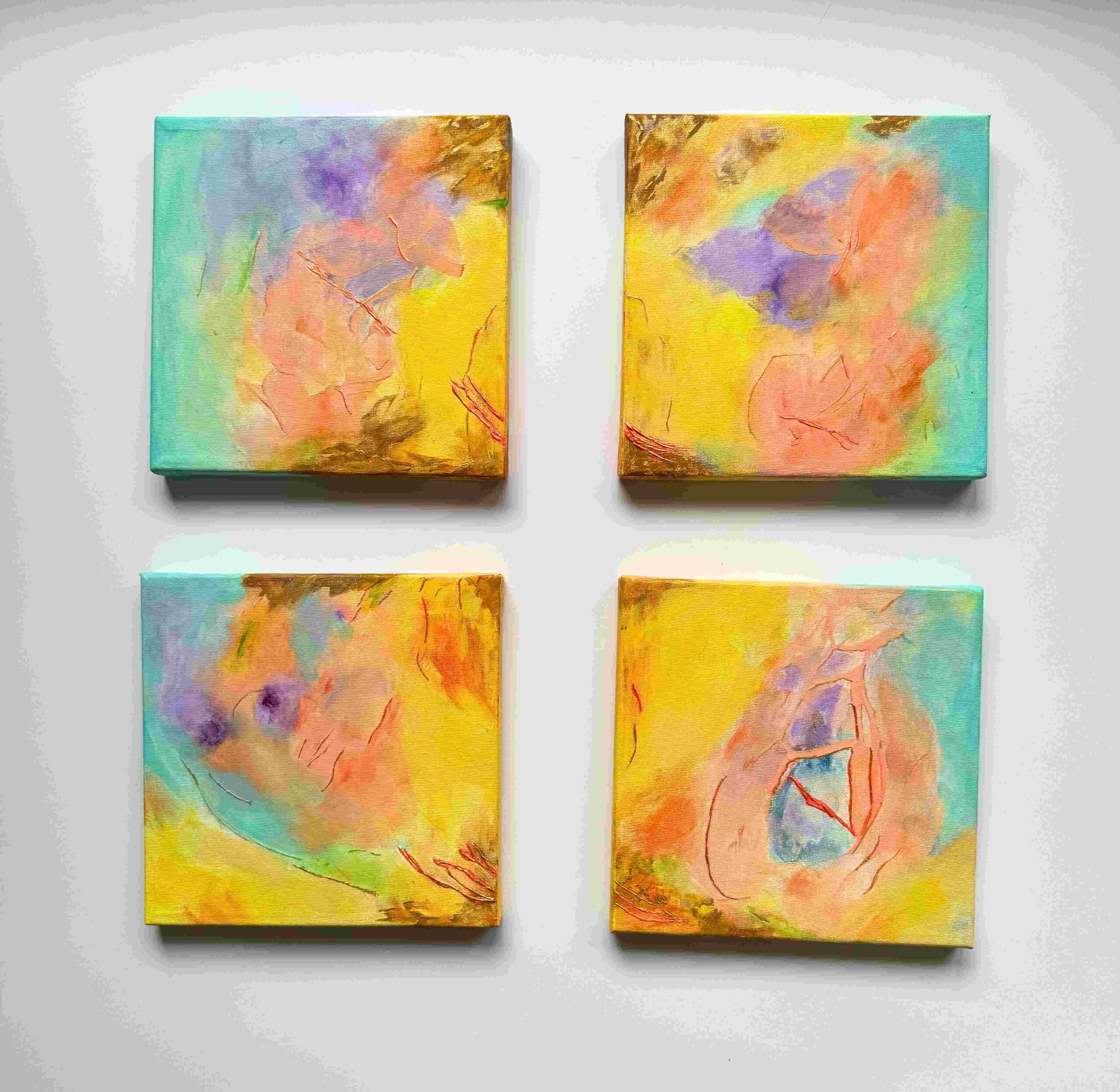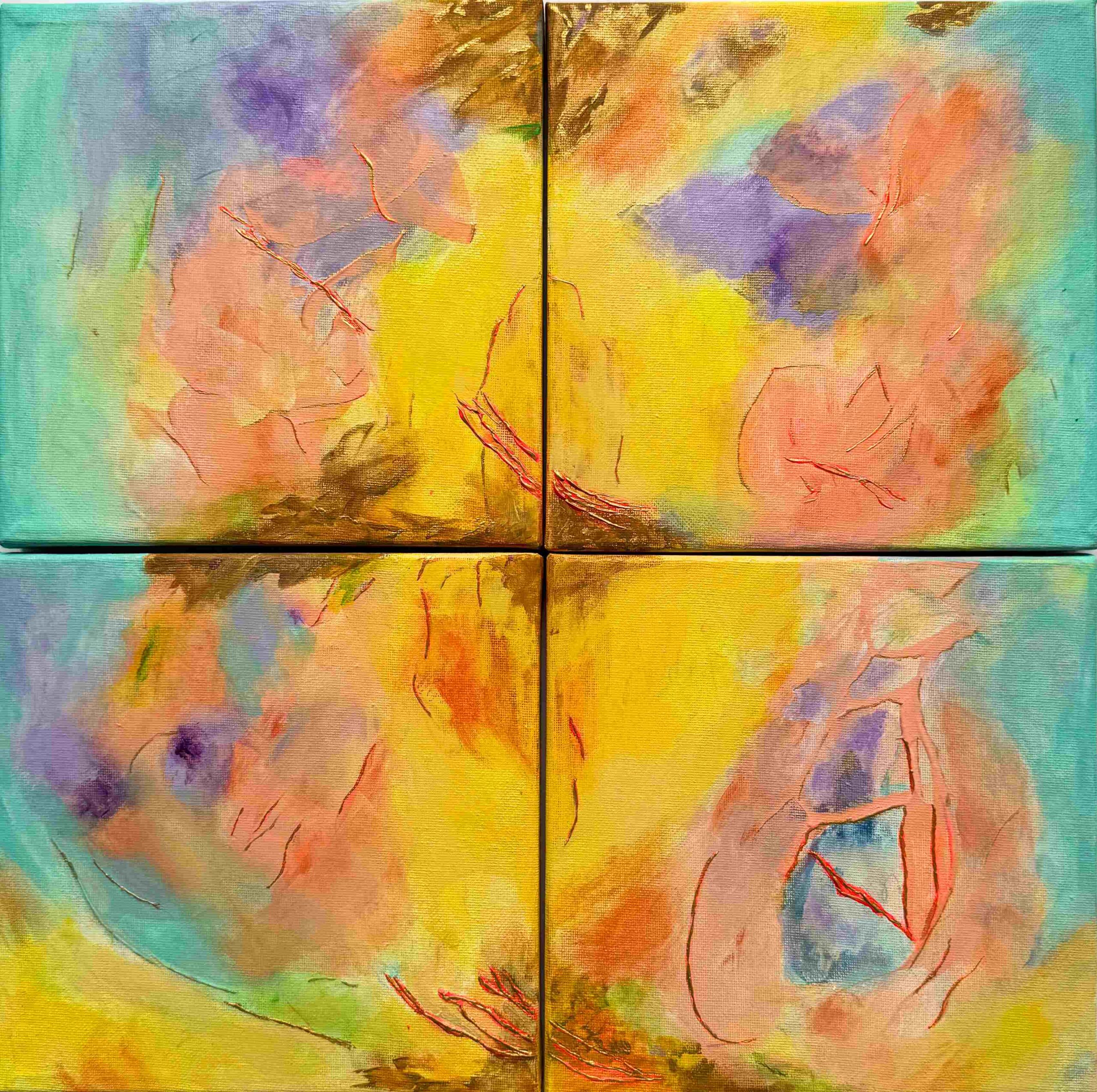 This quadriptych radiates warmth, trust, and renewal. The vivid tones of pink, yellow, green, and blue invite the viewer to slow down, breathe, and feel the gentle pulse of light that flows through all things. Created as a symbol of emotional balance and creative freedom, “Joy” transforms any space into a sanctuary of inspiration and calm.